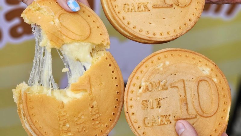 Món bánh đồng xu phô mai kéo sợi được yêu thích nhờ có lớp bánh ngoài thơm, mềm, ngọt dịu và lớp nhân phô mai mozzarella dẻo dai ăn cực bắt miệng. Bạn có thể thưởng thức món bánh ngày cùng trà sữa, các loại trà trái cây để thêm phần hấp dẫn nhé!