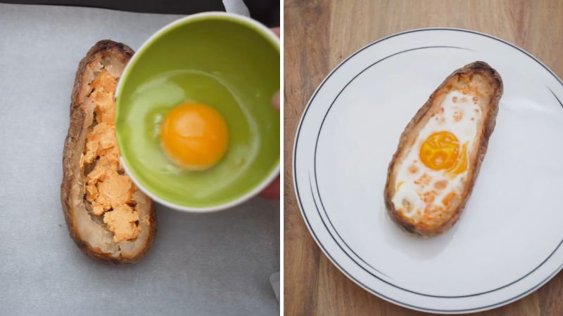 Khi khoai và trứng chín, bạn hãy dọn món ăn ra đĩa. Bên cạnh đó, bạn có thể thưởng thức bơ kim chi béo ngậy, đậm đà với bánh mì nướng cũng rất ngon.
