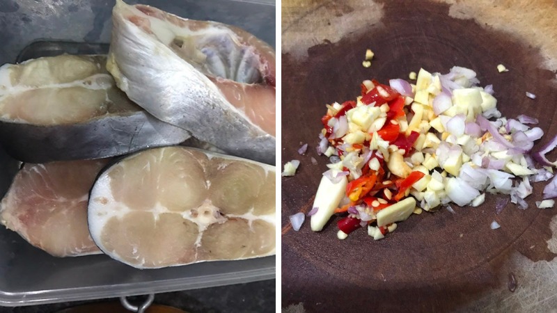 Cá hú mua về rửa sạch với nước muối pha loãng, sau đó rửa lại bằng nước sạch. Tiếp theo, thái cá thành từng lát mỏng dày khoảng 1 đốt ngón tay rồi để ráo nước.