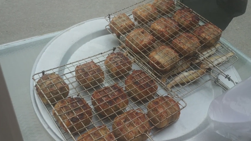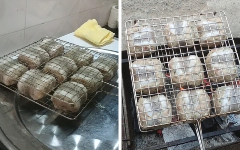 Bạn cho từng miếng cuộn cá lên vỉ rồi đặt lên trên bếp than hồng, nướng đến khi cá vàng đều cả 2 mặt là được. Thường thì nướng khoảng 1 giờ thì cá chín hoàn toàn tùy theo độ dày của cuộn cá mà canh thời gian cho thích hợp.