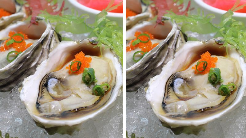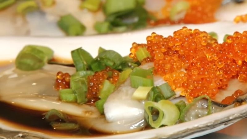 Hàu sashimi vừa ngon mắt vừa ngon miệng. Hàu tươi ngọt, mềm thơm, trứng cá chuồn giòn giòn béo bùi, tất cả quyện cùng nước sốt mặn mặn, cay nồng rất hấp dẫn. Thưởng thức ngay bạn nhé!