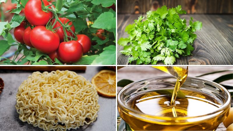 Nguyên liệu làm món mì xào cà chua