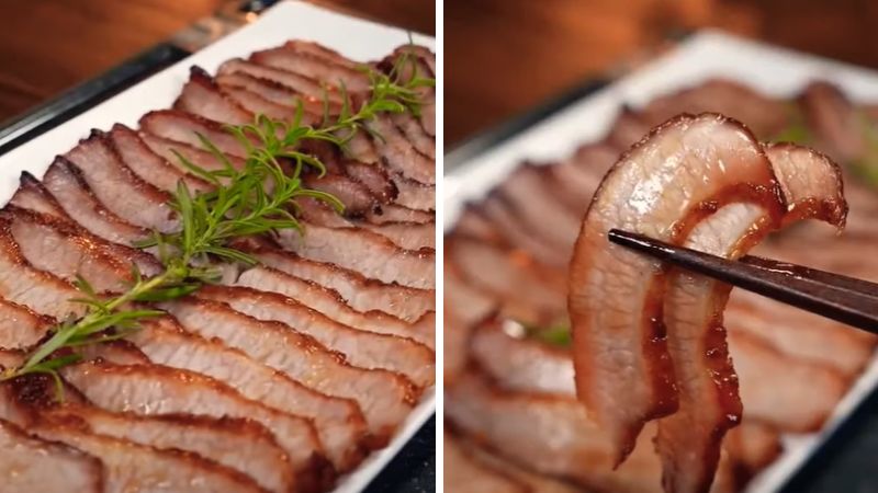 Nọng heo nướng bằng nồi chiên không dầu vừa tiện lợi vừa giúp cho miếng thịt mềm ngon, béo ngậy hòa quyện với sốt xá xíu đậm vị, giúp món ăn trở nên hấp dẫn hơn. Đặc biệt, lớp vỏ giòn rụm và màu vàng óng ánh của miếng thịt sẽ khiến bạn không thể cưỡng lại.