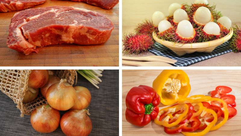 Nguyên liệu làm món thịt bò xào chôm chôm
