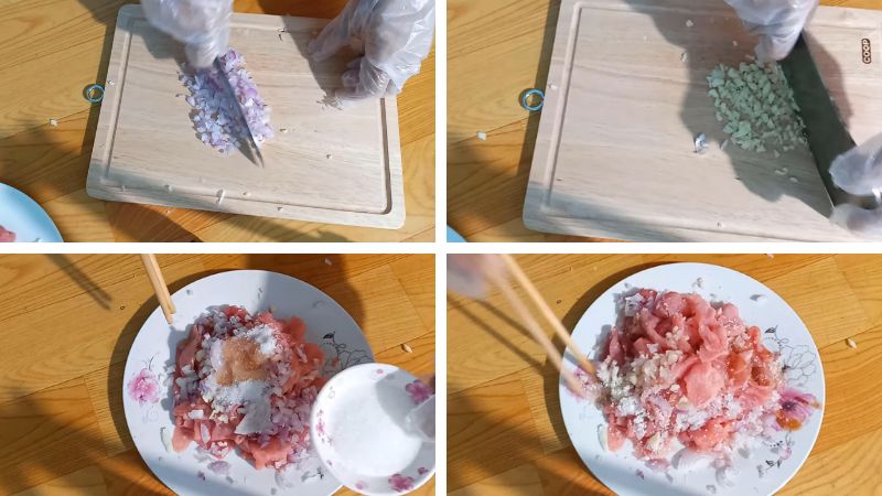 Dùng đũa trộn đều thịt bò với gia vị, rồi để thịt thấm trong 15 phút.