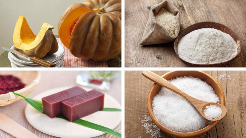 Nguyên liệu làm món bánh gạo nếp bí đỏ