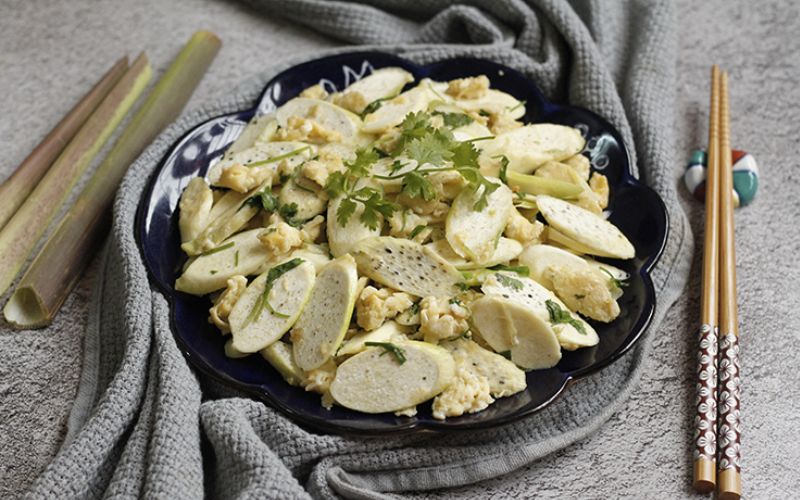 Củ niễng có vị ngọt bùi kết hợp với vị béo của trứng khiến cho hương vị món ăn trở nên mới lạ. Ở nông thôn, người dân thường ăn củ niễng xào trứng với cơm nóng. Trước khi ăn, bạn có thể rắc thêm chút tiêu và rau mùi. Món này được khuyến khích giữ nóng khi ăn để thưởng thức tròn vị nhất.