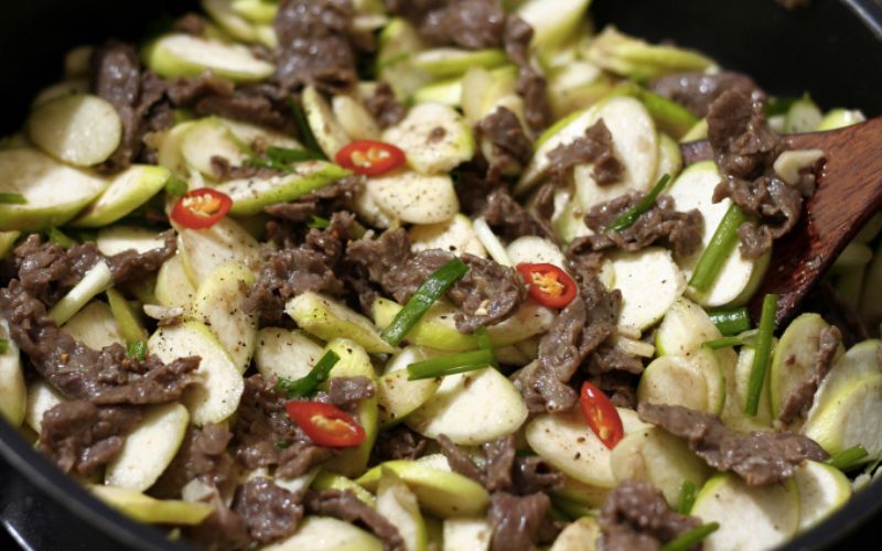 Củ niễng xào thịt bò là món ăn thanh nhiệt thích hợp cho những ngày oi bức. Hương vị món này khá lạ miệng. Đây là sự kết hợp hoàn hảo giữa vị giòn ngọt của củ niễng và vị bùi bùi ngậy ngậy của thịt bò. Sau khi tắt bếp, bạn nêm thêm chút rau mùi, hành lá rồi bày trí ra dĩa. Rắc ít tiêu lên và thưởng thức ngay thôi.