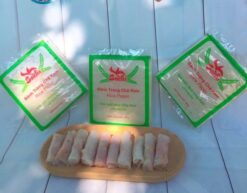 Sản phẩm bánh tráng cuốn chả ram của Sachi với các thành phần chính từ gạo, và ít bột mì